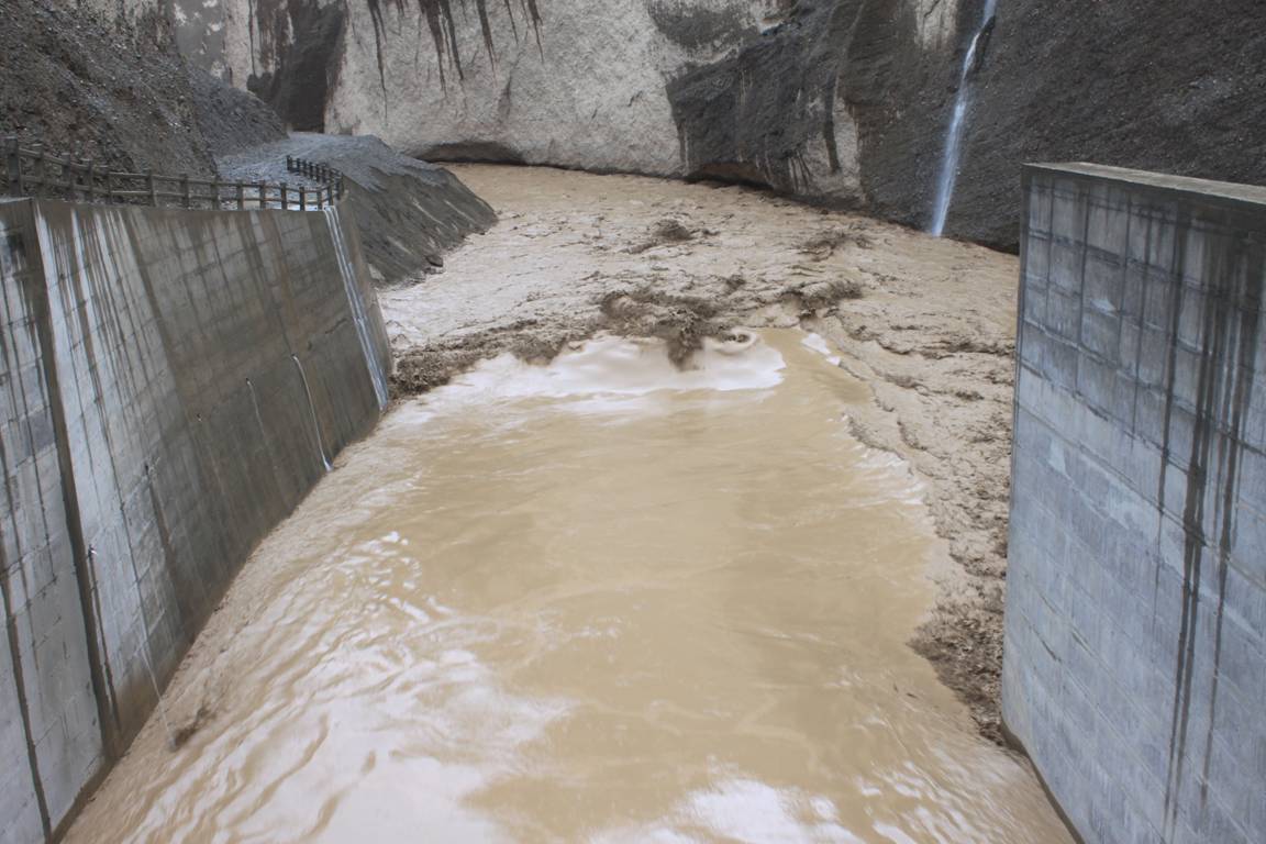 近日,迪那河流域山區及五一水庫壩址區域持續降雨,受此影響,五一水庫上游來水量不斷增大。在6月18日12時至6月19日12時24小時內,五一水庫導流兼泄洪沖砂洞進口水位連續上漲約9米。6月19日12時40分,第一次洪峰通過五一水庫,峰值水位1303m,峰值流量約440m³/s,超設計5年一遇洪水,標志著五一水庫正式進入2013年汛期。此次洪峰未對五一水庫在建工程造成任何損失。