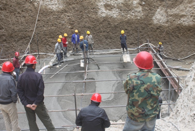 五一水庫工程地質復雜,施工環境惡劣。在澆筑前,公司領導多次組織監理及施工單位,探討最佳施工方案,以確保基座混凝土澆筑安全有序的進行。