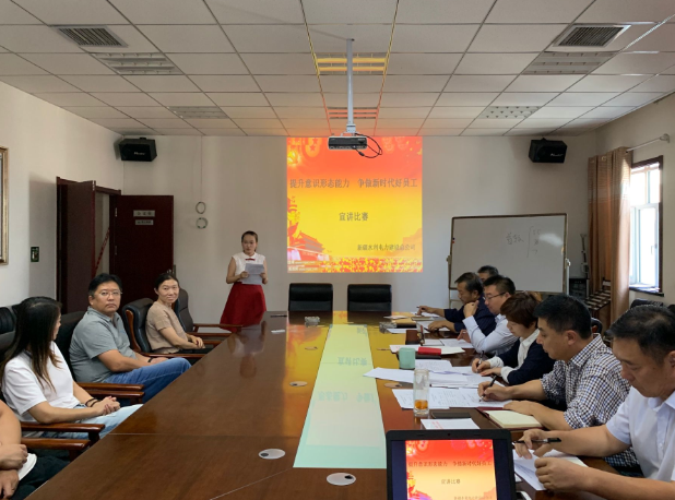 為深入貫徹落實(shí)黨的意識形態(tài)工作責(zé)任制,深化領(lǐng)導(dǎo)干部和職工對意識形態(tài)工作的認(rèn)識,加強(qiáng)職工隊(duì)伍意識形態(tài)能力建設(shè)。9月25日下午,新疆水利電力建設(shè)總公司黨委根據(jù)集團(tuán)公司黨委下達(dá)的文件精神,有效開展了“提升意識形態(tài)能力,做新時(shí)代好員工”為主題的宣講活動(dòng)。