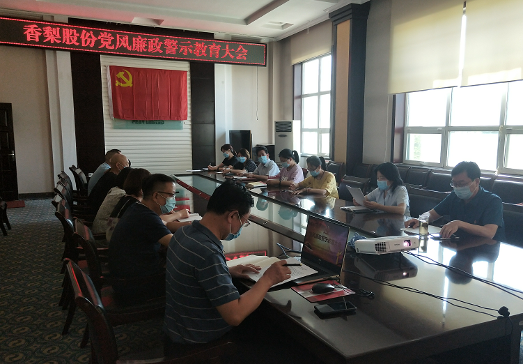 加強企業黨風廉政建設和作風工作,要立足于教育,著眼于防范。為加強黨員干部廉政教育,提高個體素質,增強自身免疫力,結合慶祝建黨99周年系列活動,7月13日下午,香梨股份公司召開廉政警示教育大會。公司全體黨員,中層副職以上管理人員參加了大會。
