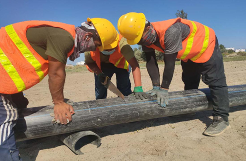 福海旺源駝奶產業園項目7月30號完成開標,建源工程公司立即組織人員機械進場,特殊時期與業主單位、物資公司多方協調管材進場,目前給水管道已開挖完成。